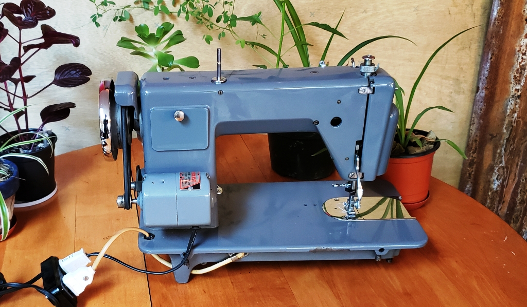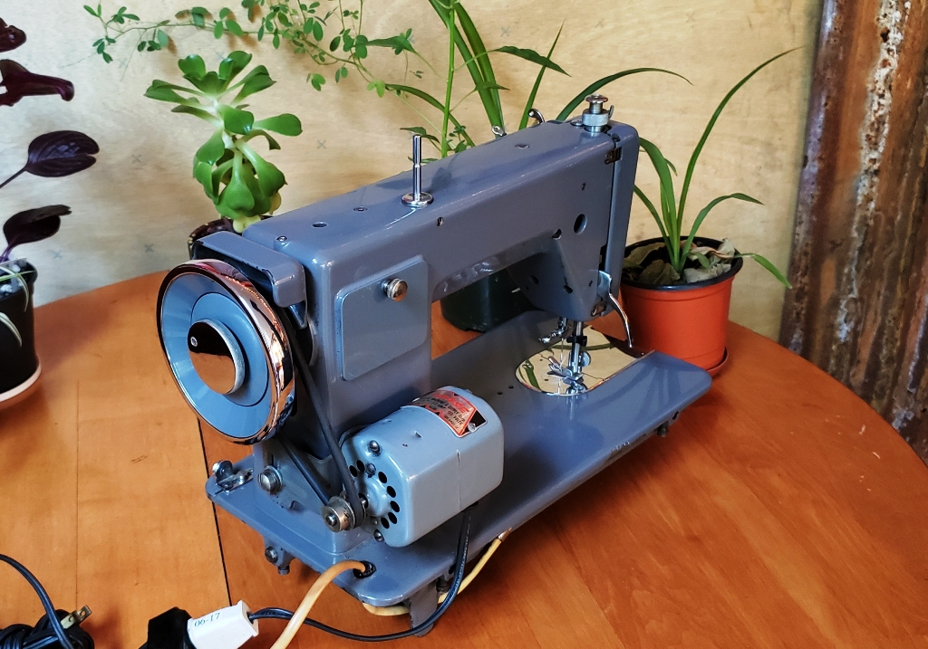 We've had her apart and lovingly scrubbed her bits and polished her parts before we reassembled her and tested each assembly for perfect operation. When she stood clean and fresh, fully assembled, we tested to be sure she was running and sewing as she should.