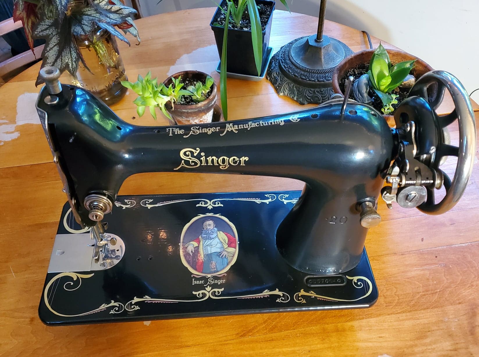 This is the first in our series of Isaac Singer Machines, decorated with the image of the man who started the company, long, long ago.