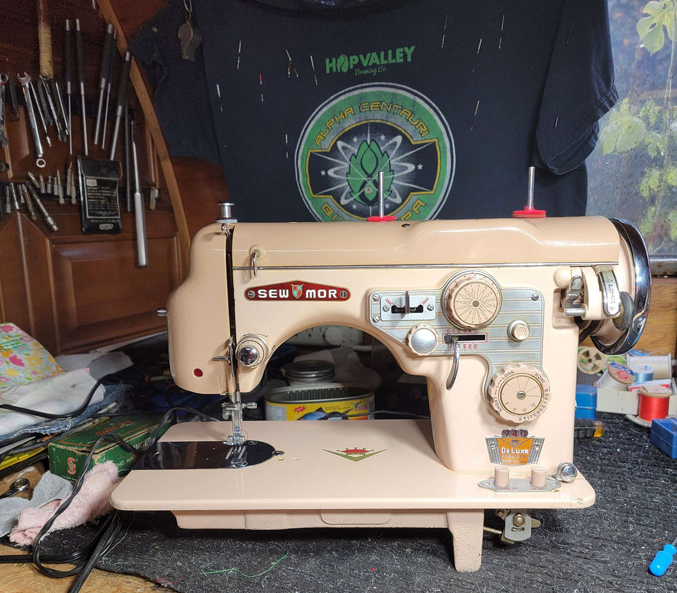 sewing machine, repair, restore, fix, adjust, set, tension, stitch width, stitch length, hook, bobbin, bobbin case, motor, needle, needle clamp, tension assembly, threading, wind, thread, detail, feed drop, feed dogs, pressure, tighten, seam, sew, thread, pack, ship, shipping, send, disassemble, take apart, put together, make, dress, shirt, quilt, quilting,lift, lifter, foot, attachment, treadle, trettle, pump, hand crank, stitching, stitch, cosplay, uniform, costume, create, baby, children's, drag, women's, men's,